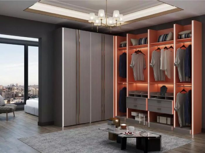 衣柜一切都是從簡設(shè)計,明亮的橘紅色瞬間打破色彩的沉悶,非常有層次的光暗照明營造高級的衣柜空間。底蘊深厚的肌理質(zhì)感,與沉穩(wěn)男性的豐富閱歷相得益彰,這才是精致男人該有的衣柜間呀!